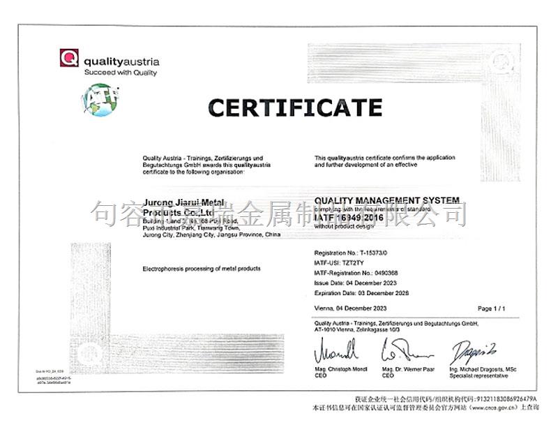 質(zhì)量管理系統(tǒng)認(rèn)證證書(一)